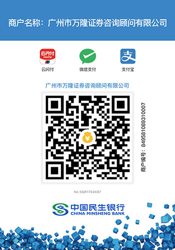 【鄭重提醒】凡購買萬隆投顧服務產品的客戶,可選擇打開微信手機客戶端掃描二維碼、支付寶手機客戶端輸入需購買產品的金額、以及采取網銀匯款或線下到銀行方式完成支付! 為保護投資者合法權益,廣州萬隆鄭重聲明:我司禁止對私收取客戶款項,所有客戶款項均以廣州萬隆對公賬戶收取。如果您對私付款而造成損失,將由您自行承擔。我司鄭重提醒廣大投資者,謹防個人收款騙局,維護自身財產安全。請在匯款和簽約前務必撥打專線進行確認:020-66392828、15814869581 賀小姐、13660851821 羅小姐,以辨真偽。